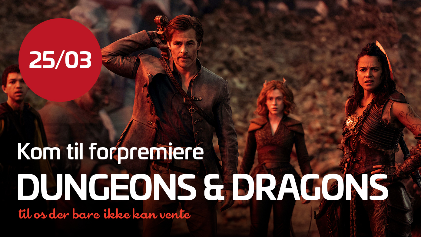 Lørdag d. 25. marts inviterer vi til forpremiere på 'Dungeons & Dragons: Honor Among Thieves', en filmatisering af det ultra populære rollespil!