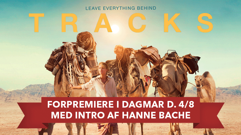 Kom med, når bestyrelsesmedlem Hanne Bache fra Dansk-Australsk-New Zealandsk Venskabsforening indleder den smukke, utrolige og sandfærdige historie om kvinden, der kydsede Australiens ørken med en flok kameler og en hund! 'Tracks' er en blanding mellem den eopkegørende australske drama Rabbit-Proof Fence og det skandinaviske eventyr Kon-Ti-KI og var nomineret til Guldløven på Venedig Film Festival og til 'Bedste Film' på London Film Festival. På rollelisten ses Mia Wasikowska ('Alice i Eventyrland', 'Albert Nobbs') samt Adam Driver ('Girls', 'Frances Ha', 'Inside Llewyn Davis). Filmen er instrueret af John Curran, der kendes fra 'We Don't Live Here Anymore' og 'Kærlighedens slør' og er produceret af folkene bag 'Kongens store tale'. Inden filmen vil Hanne Bache fortælle om historien bag filmen samt dele sine oplevelser og opfattelser af Australien.