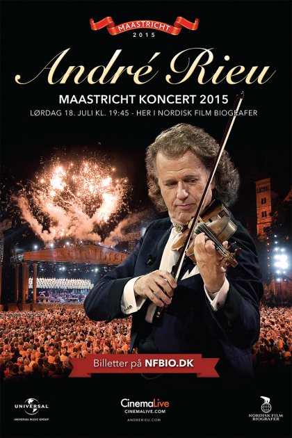 André Rieus årlige koncert i hans hjemby, Maastricht transmitteres via satellit lørdag den 18. juli kl. 20.00 fra det gamle torv ”the Vrijthof” i centrum af Maastricht.