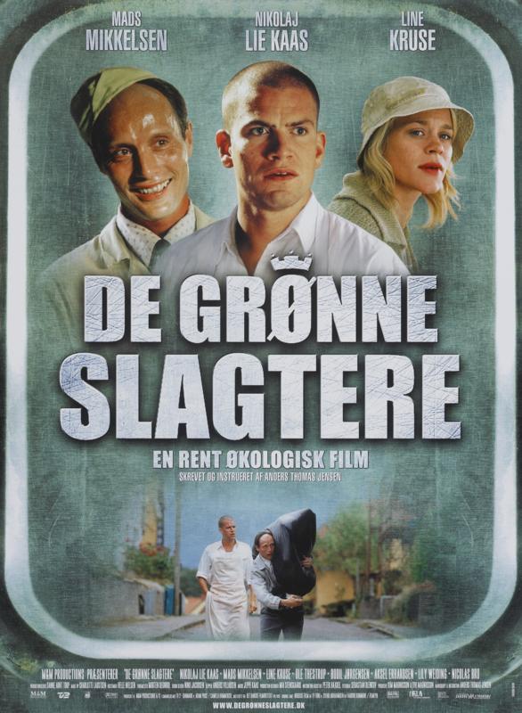 Den danske komedie 'De grønne slagtere' handler om de to slagtersvende Svend og Bjarne, der åbner deres egne lokale biks. Men de har svært ved at trække kunder ind i butikken. Indtil de finder en hemmelige ingrediens: Menneskekød. Samtidig prøver Bjarne at komme sig over fortidens traumer og skal genforenes med sin evnesvage bror, Eigil. 'De grønne slagtere' byder på absurd humor, kannibalisme og vanvittige karakterer som netop Svend-Sved og Eigil. Du har sjældent set en dansk film som denne. Filmen er skrevet og instrueret af Anders Thomas Jensen, der før denne havde lavet Blinkende lygter - og senere har stået bag Adams æbler og Mænd & høns.