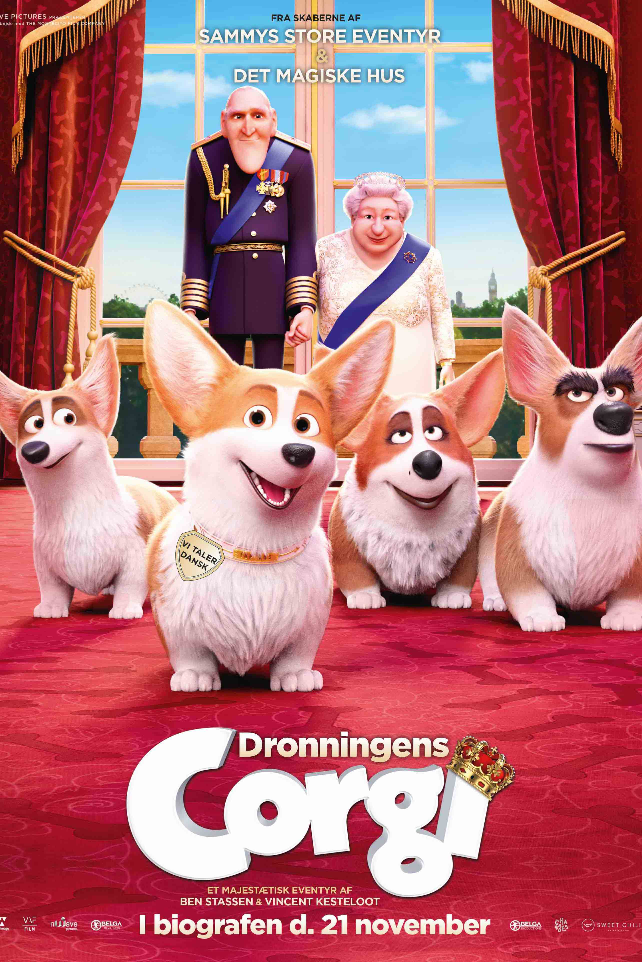 Familiefilmen 'Dronningens Corgi' handler om den meget forkælede hund Rex, som er den engelske Dronning Elizabeths yndlingshund.