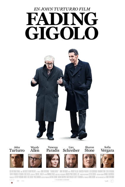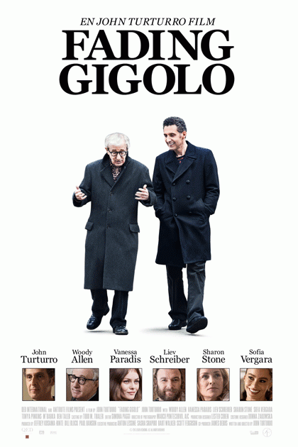 ’Fading Gigolo’ er John Turturros femte spillefilm som instruktør, og han har valgt sig selv til rollen som moderne Don Juan (eller prostitueret, om man vil). Turturro er kendt som alsidig skuespiller fra fx Coen-brødrenes ’O Brother, Where Art Thou?’ (2000) og to af Transformers-filmene. Woody Allen spiller hans gode ven og alfons. Allen er selv kendt som instruktør af talrige komedier om kærligheden og vanskelige forhold mellem mennesker, bl.a. ’Annie Hall’ (1977), som han selv spiller med i. Blandt de smukke kvinder, som Turturro får lov at behage, finder vi Sofía Vergara (TV-serien ’Modern Family’), Sharon Stone (Casino) og Vanessa Paradis (Pigen på broen). (copyright: kino.dk)