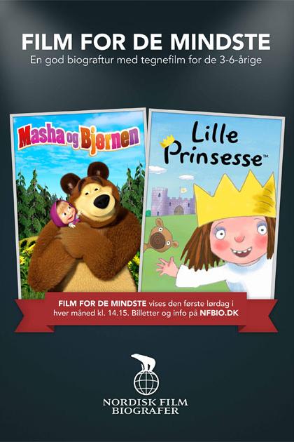 Giv familiens yngste en god biografoplevelse med de populære børnefilm-serier ’Masha og Bjørnen’ og ’Lille Prinsesse’, når Nordisk Film Biografer inviterer til ’Film for de mindste’ til kun 40 kr. pr. billet. Arrangementet finder sted kl. 14.15 den første lørdag i hver måned, og hver gang ruller der tre nye afsnit af hver serie over lærredet.