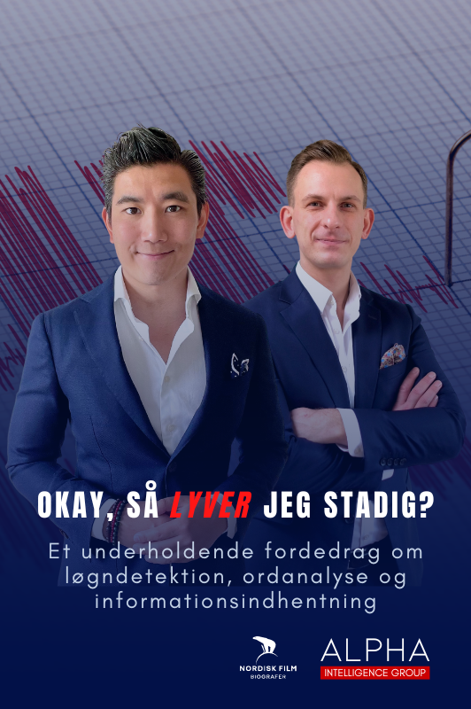 I dette foredrag, har vi taget det bedste fra vores udsolgte foredrag "Okay, så lyver jeg stadig?" og "Farlig Intuition". Foredraget er fyldt med masser af nyt indhold og læring omkring at aflæse andres nonverbale signaler, meningen bag, hvad folk skriver eller siger, hvordan du skelner mellem fakta og myter om kropssprog, og ikke mindst efterretningstjenesternes hemmelige teknik til, hvordan du får tilgang til vigtig eller sensitiv information uden at stille et eneste spørgsmål! Alt sammen i en videnskabelig kontekst.