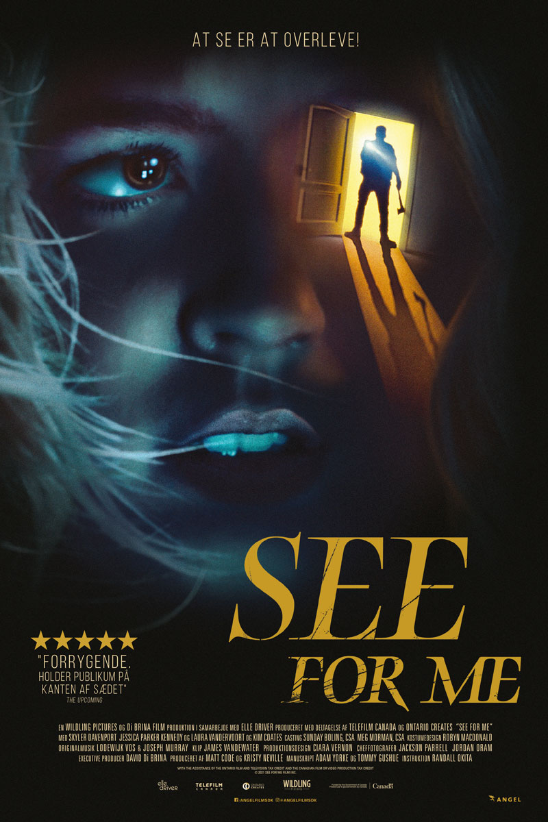 Filmen 'See for Me' følger den blinde Sophie, der er hyret til at passe på et hus, da det bliver invaderet af tyve på udkig efter et skjult pengeskab. Hendes eneste forsvar er en app kaldt "See For Me", som sætter hende i forbindelse med krigsveteranen Kelly, der, som navnet antyder, ser for hende, mens Sophie forsøger at forsvare sig selv og overleve natten.